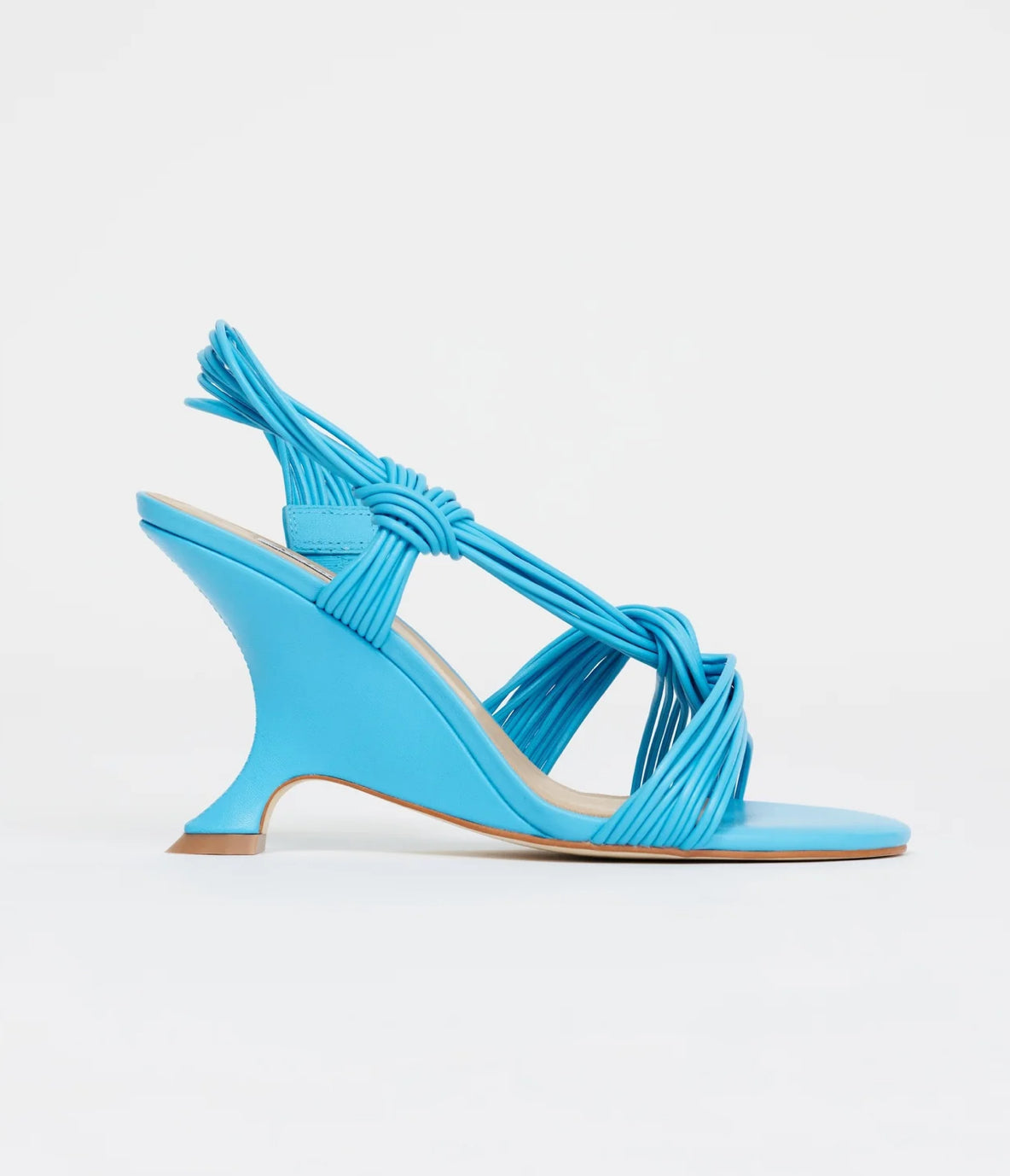 The Iverly Knot Wedge in Gold seamlessly blends modern design and intricate craftsmanship. Made from genuine cow leather, its knotted straps offer a visually striking touch, while the 10cm sculpted...