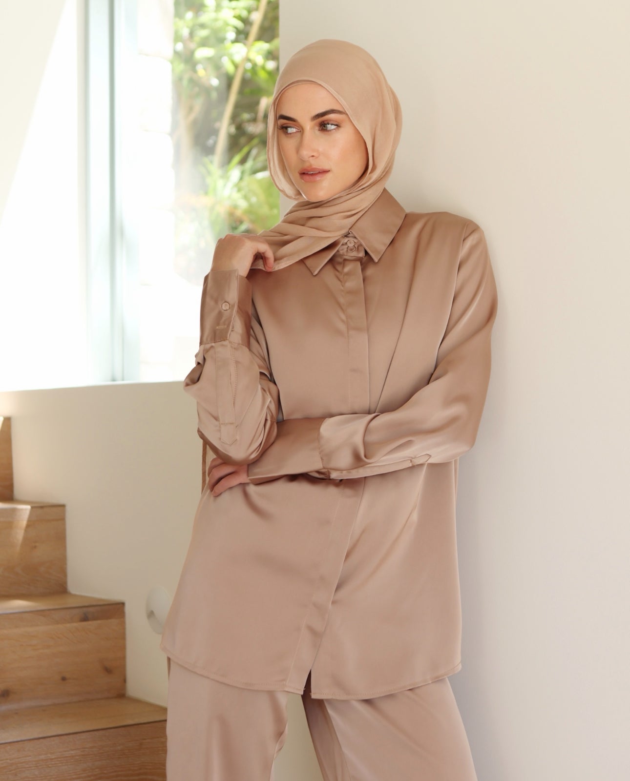 A timeless expression of sophistication, the Selene Shirt embodies understated elegance. Designed in a lustrous silky finish, it features an invisible button-down front, structured collar, and cuffed sleeves for a polished silhouette. Whether styled tucked into tailored pants or draped over a skirt, Selene brings effortless grace to every occasion.