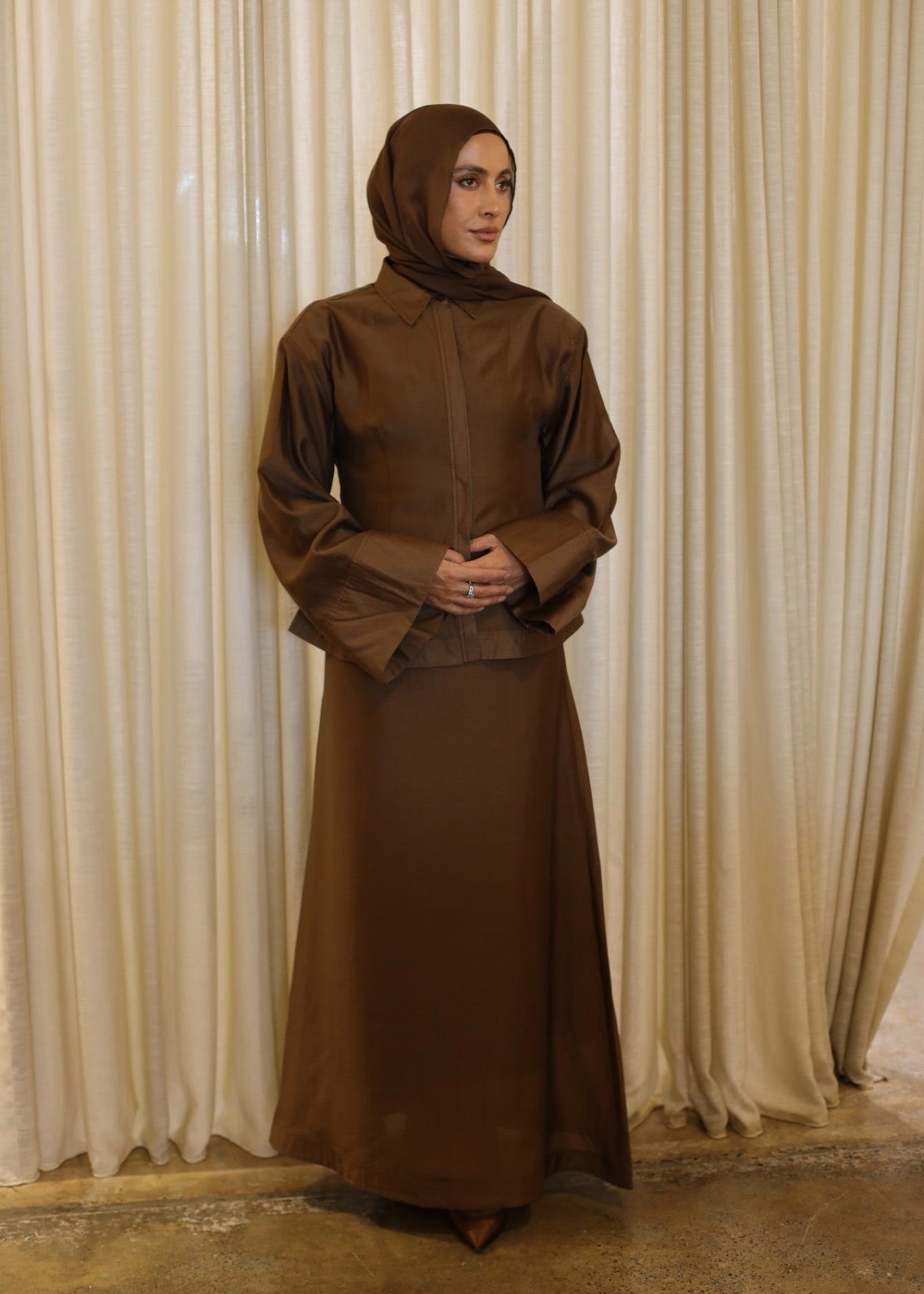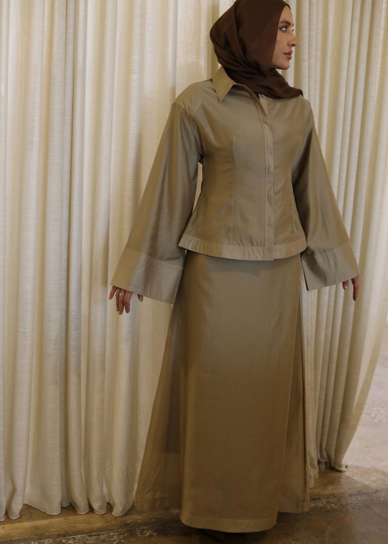 The Silque Maxi Skirt is an elegant A-line silhouette designed to fall effortlessly through the body. Cut to a full maxi length, this fully lined style features a discreet side zip for a clean, uninterrupted finish. Designed to pair beautifully with the Silque Shirt, it completes the set with understated sophistication and timeless appeal.